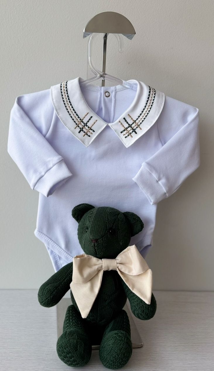 01 BODY BRANCO BORDADO VERDE ESSEM E BEGE
