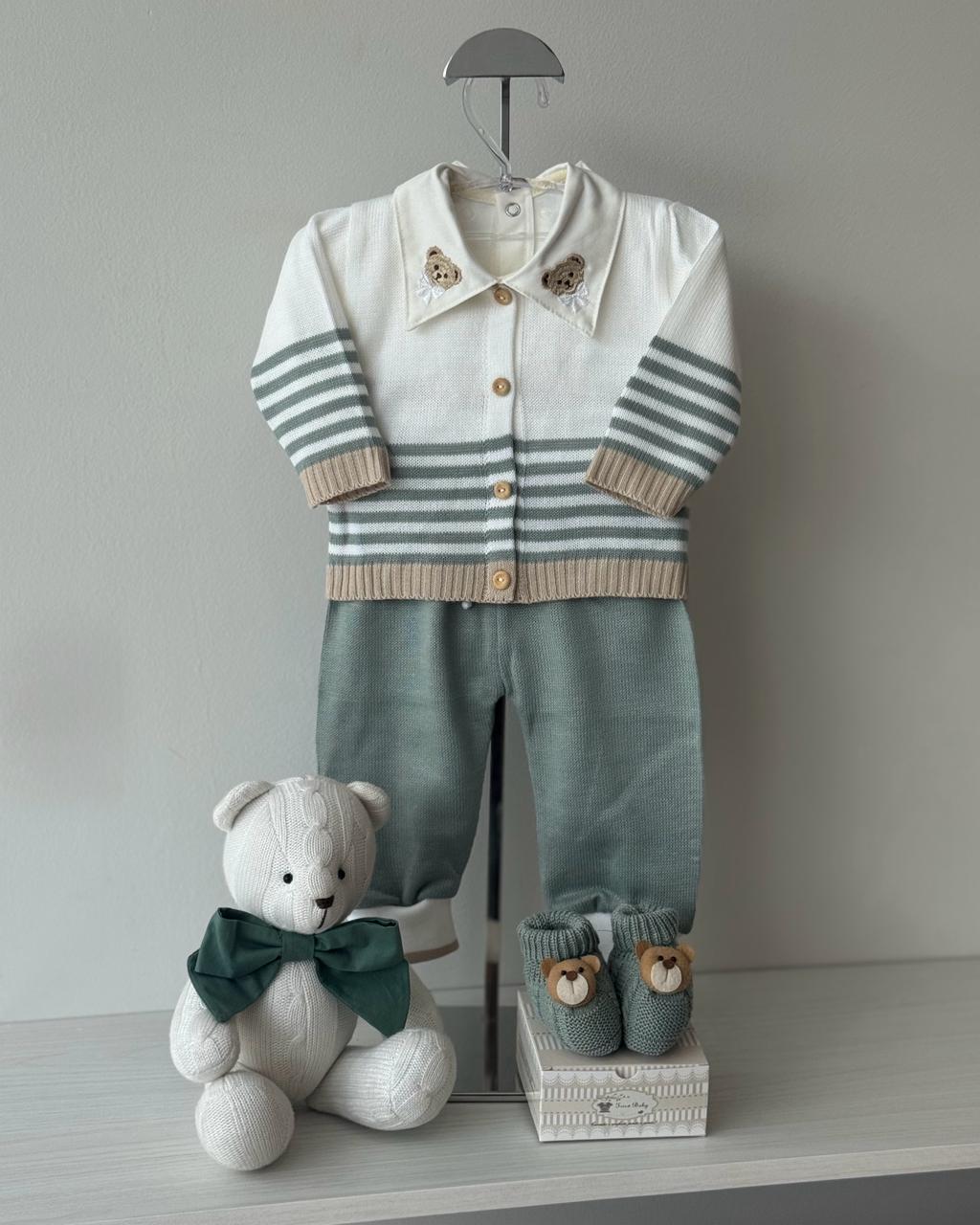 DESCRIÇÃO: A saída de maternidade Tricô Baby proporciona conforto e elegância ao seu bebê.