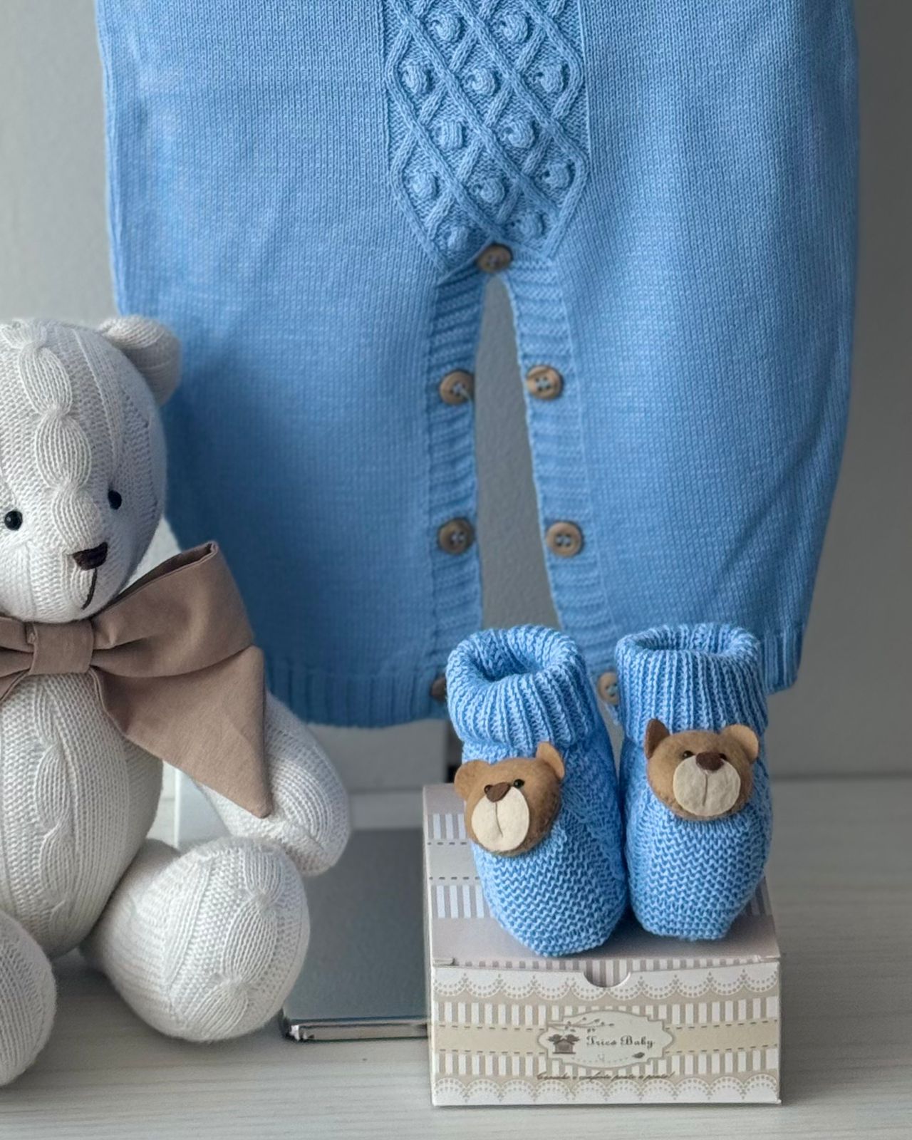 DESCRIÇÃO: A saída de maternidade Tricô Baby proporciona conforto e elegância ao seu bebê.