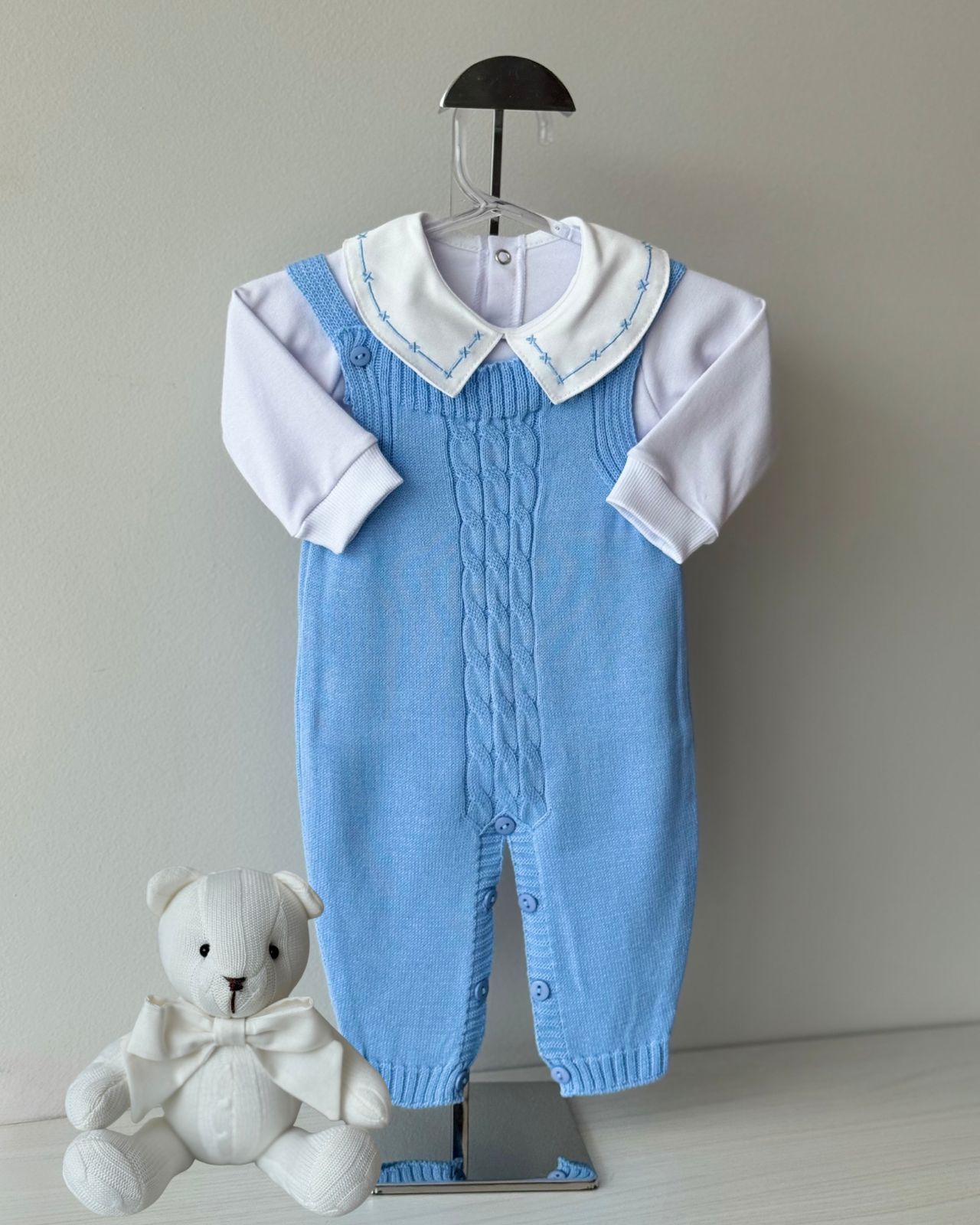 DESCRIÇÃO: A saída de maternidade Tricô Baby proporciona conforto e elegância ao seu bebê.
