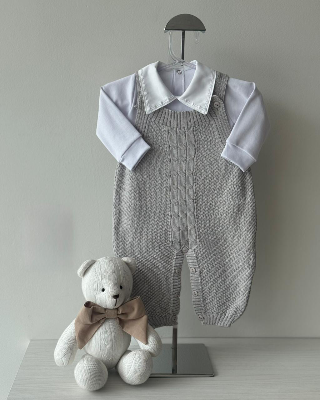 Jardineira Pipoca Cinza + Body