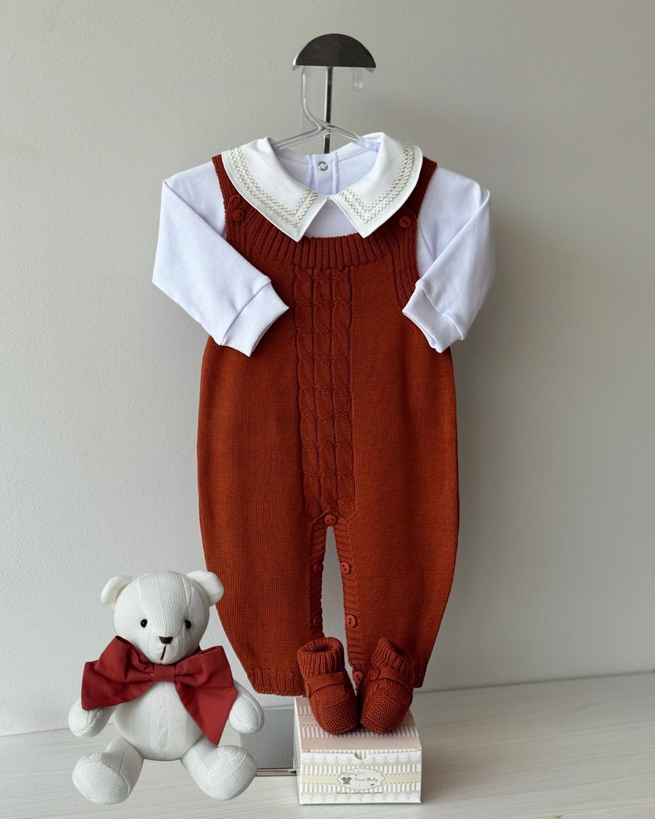 DESCRIÇÃO: A saída de maternidade Tricô Baby proporciona conforto e elegância ao seu bebê.