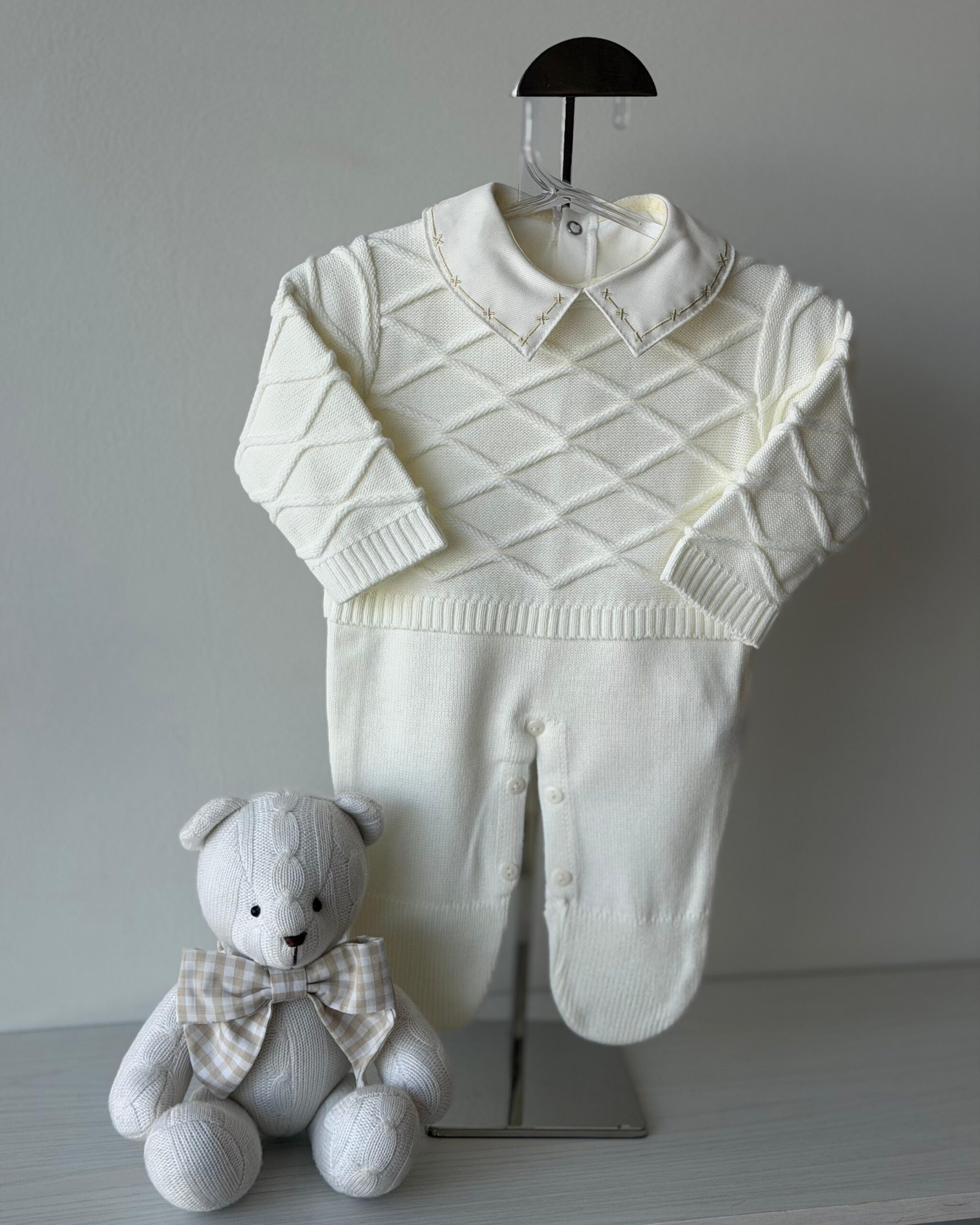 DESCRIÇÃO: A saída de maternidade Tricô Baby proporciona conforto e elegância ao seu bebê.