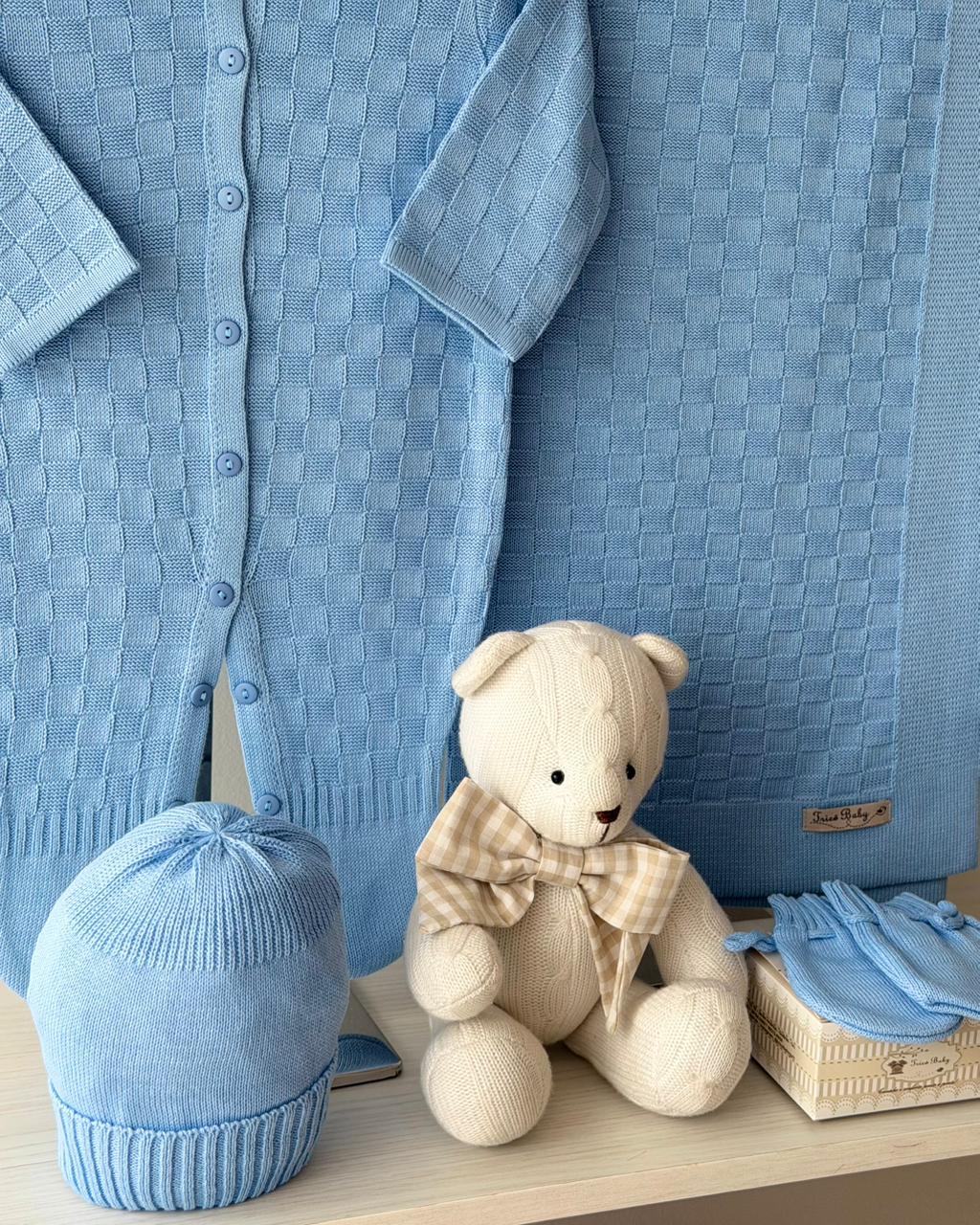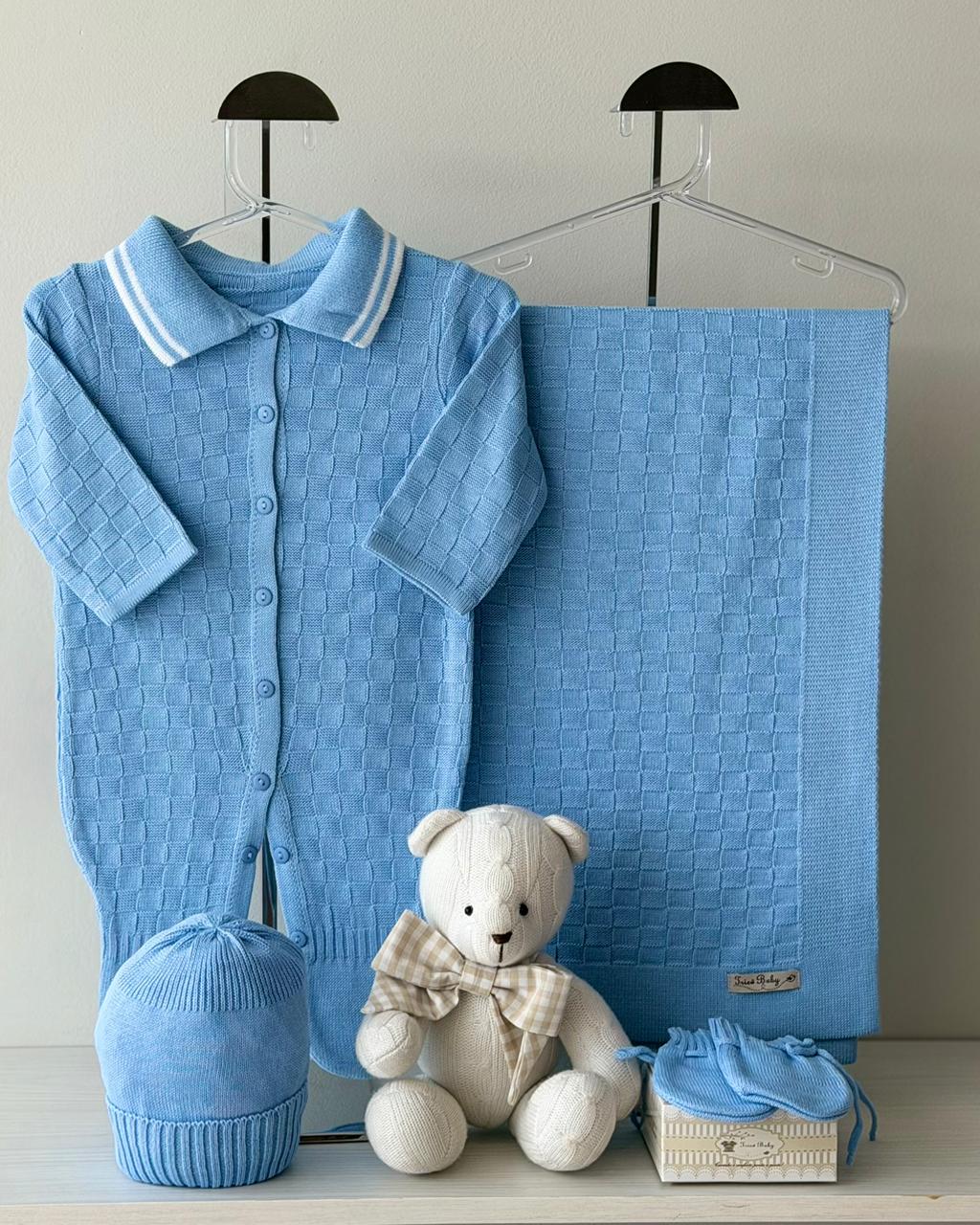DESCRIÇÃO: A saída de maternidade Tricô Baby proporciona conforto e elegância ao seu bebê.
