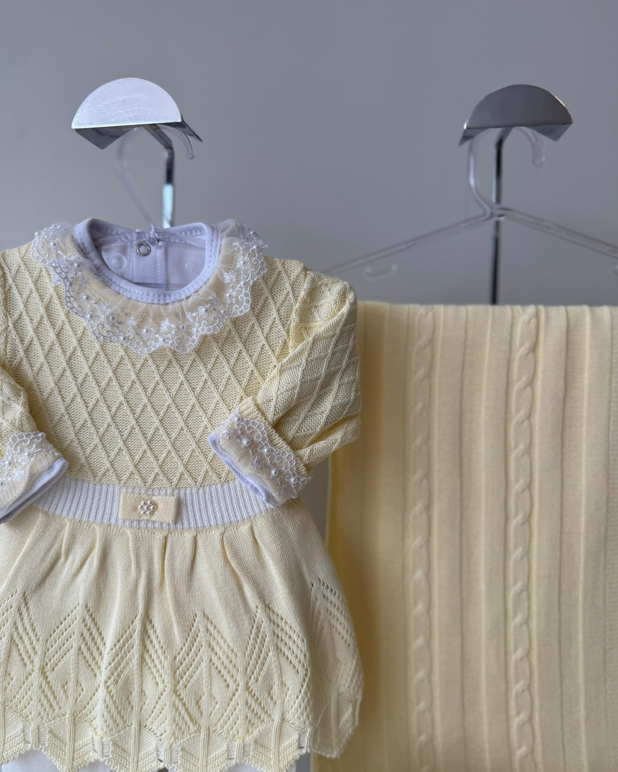 DESCRIÇÃO: A saída de maternidade Tricô Baby proporciona conforto e elegância ao seu bebê.