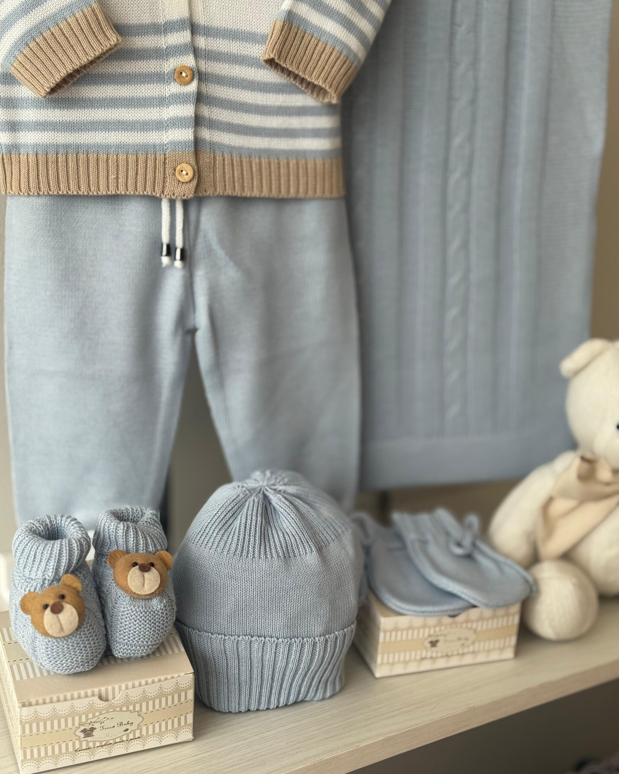 DESCRIÇÃO: A saída de maternidade Tricô Baby proporciona conforto e elegância ao seu bebê.