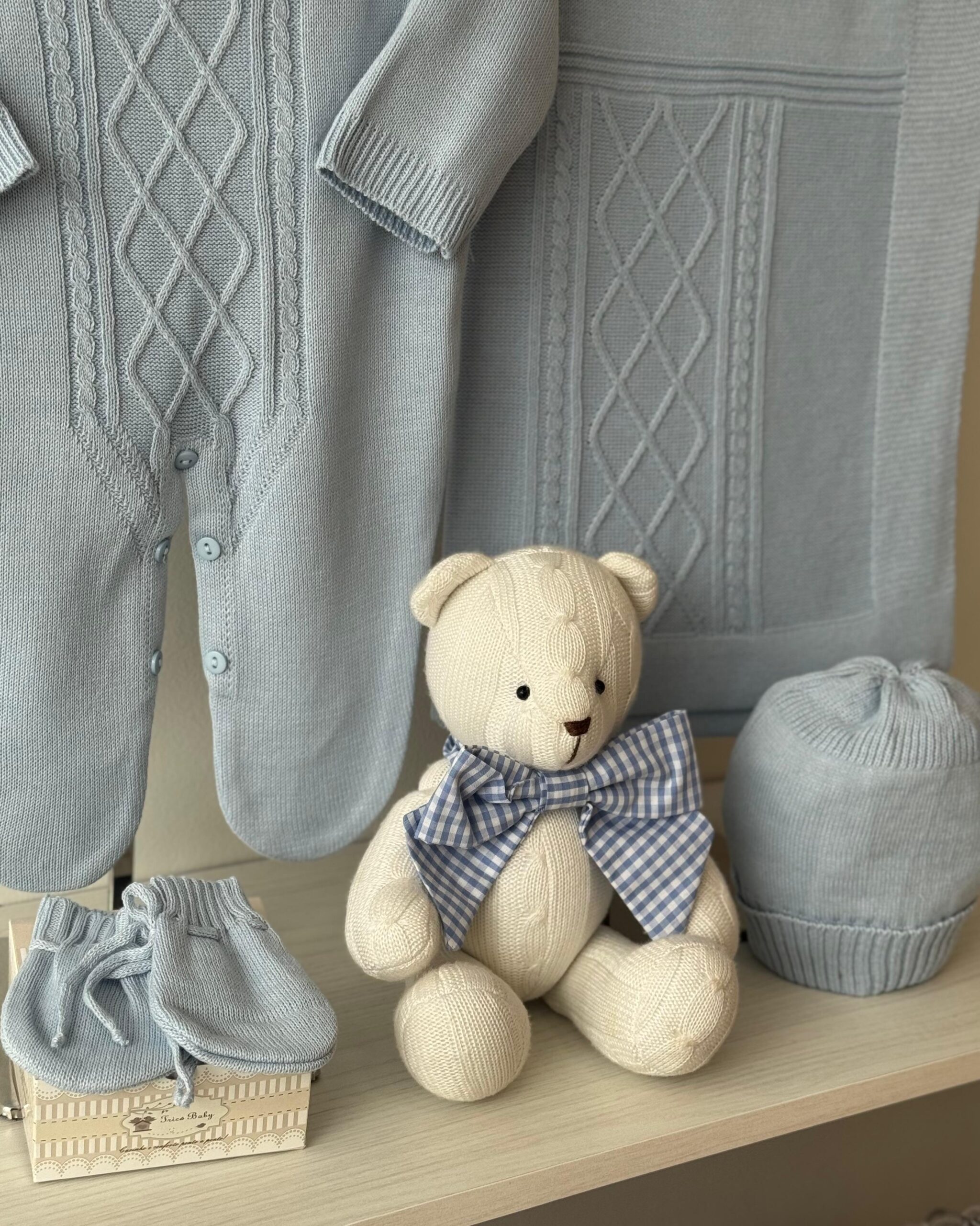 DESCRIÇÃO: A saída de maternidade Tricô Baby proporciona conforto e elegância ao seu bebê.