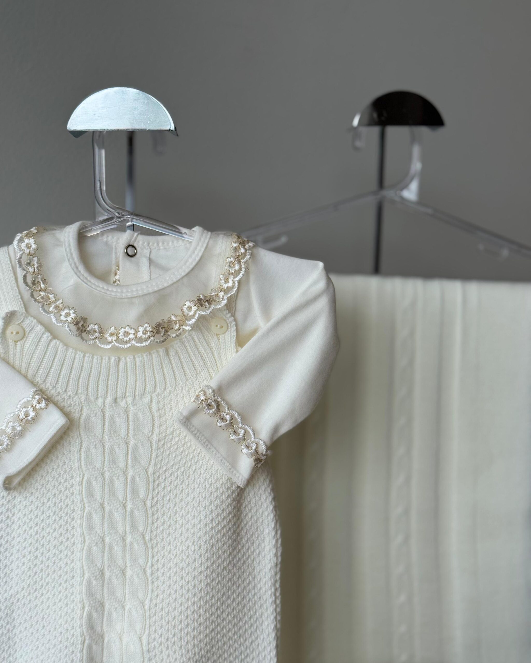 DESCRIÇÃO: A saída de maternidade Tricô Baby proporciona conforto e elegância ao seu bebê.