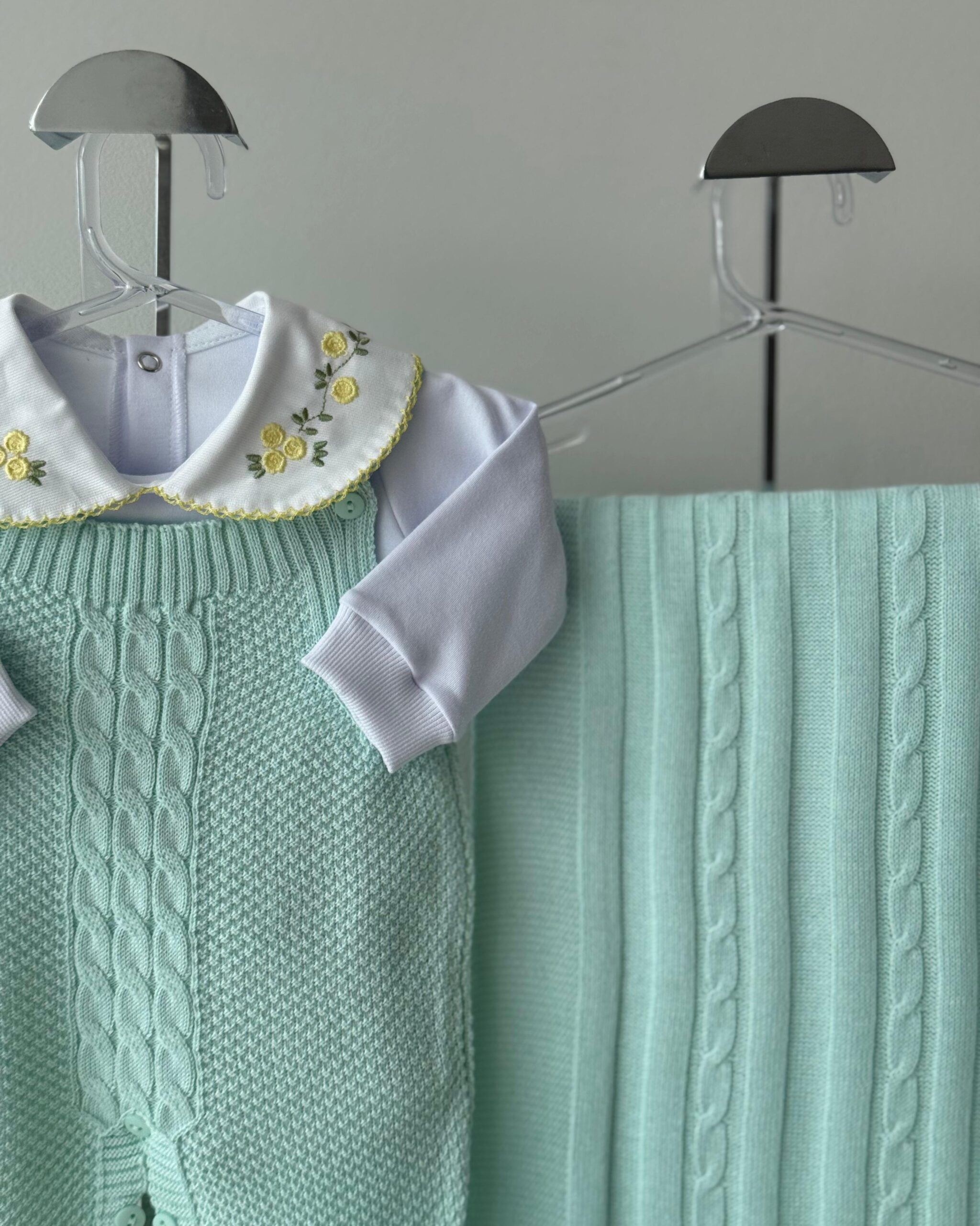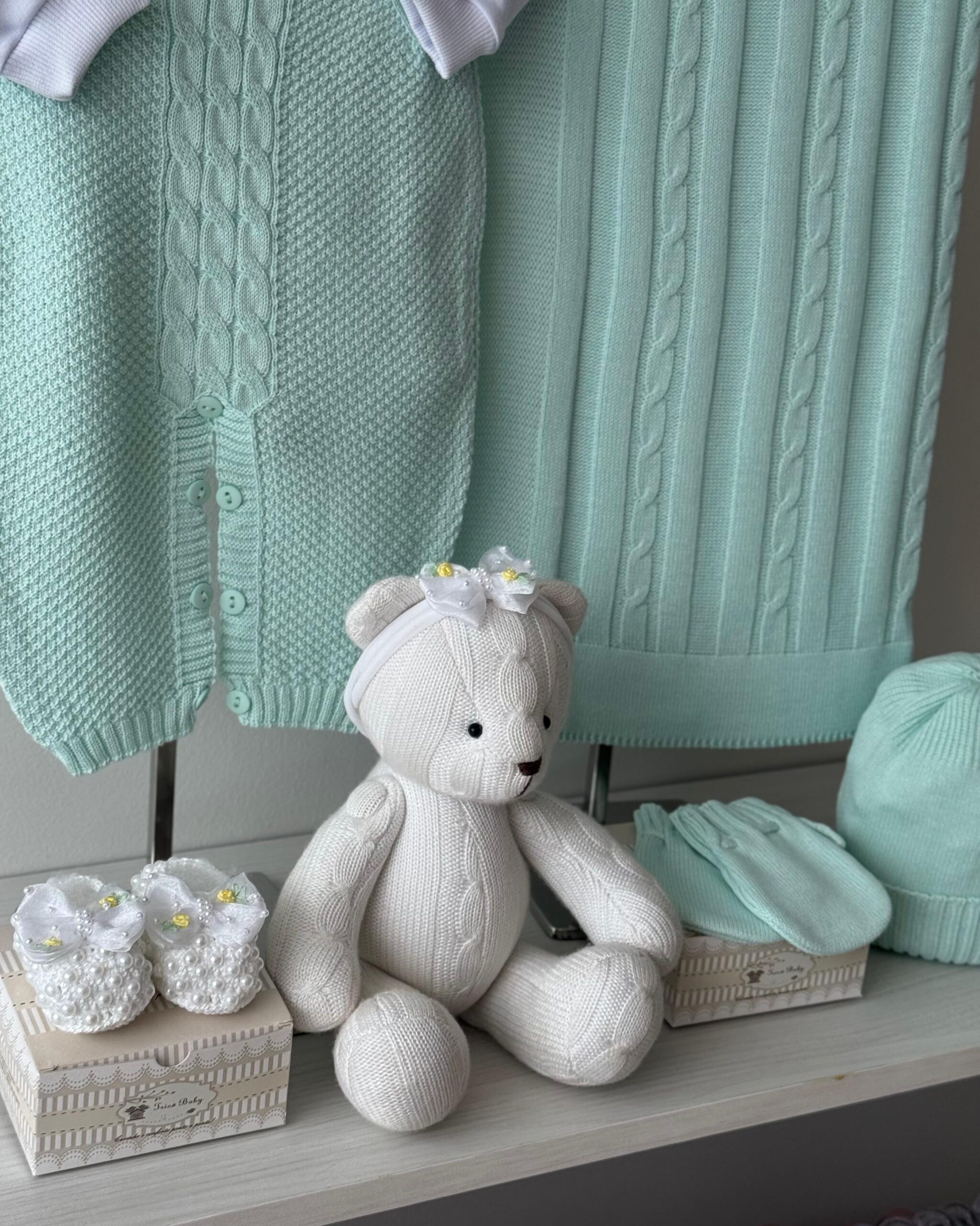 DESCRIÇÃO: A saída de maternidade Tricô Baby proporciona conforto e elegância ao seu bebê.