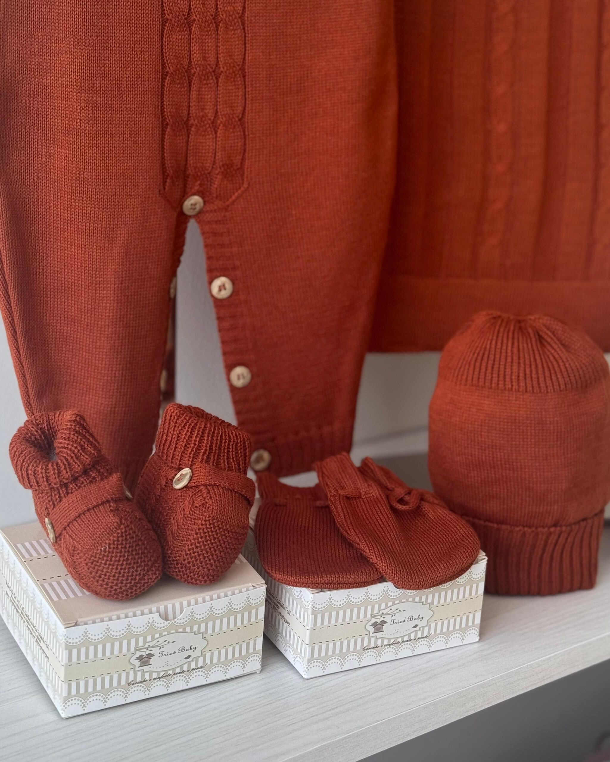DESCRIÇÃO: A saída de maternidade Tricô Baby proporciona conforto e elegância ao seu bebê.