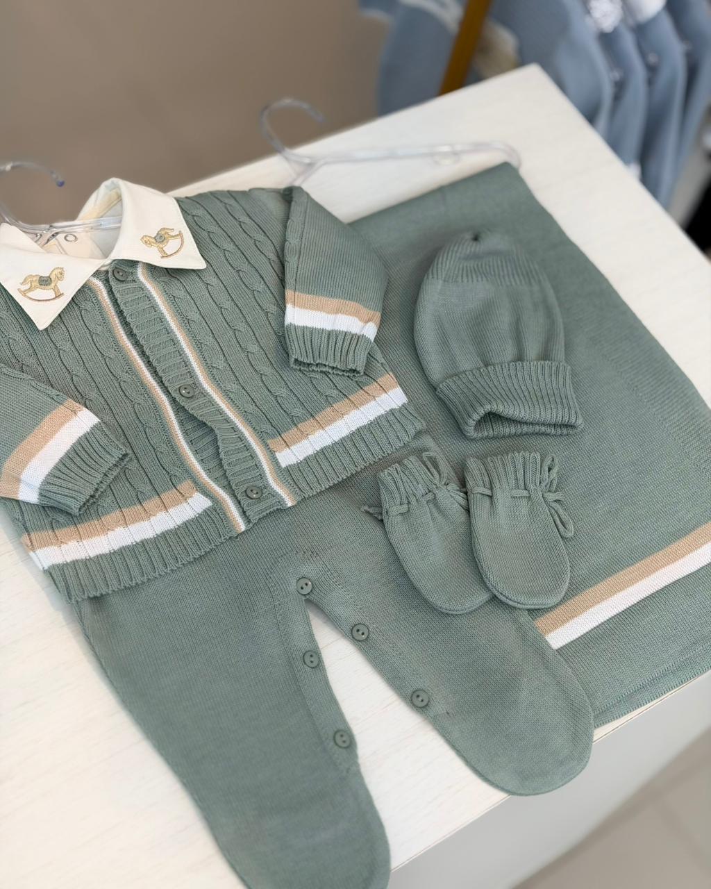 DESCRIÇÃO: A saída de maternidade Tricô Baby proporciona conforto e elegância ao seu bebê.