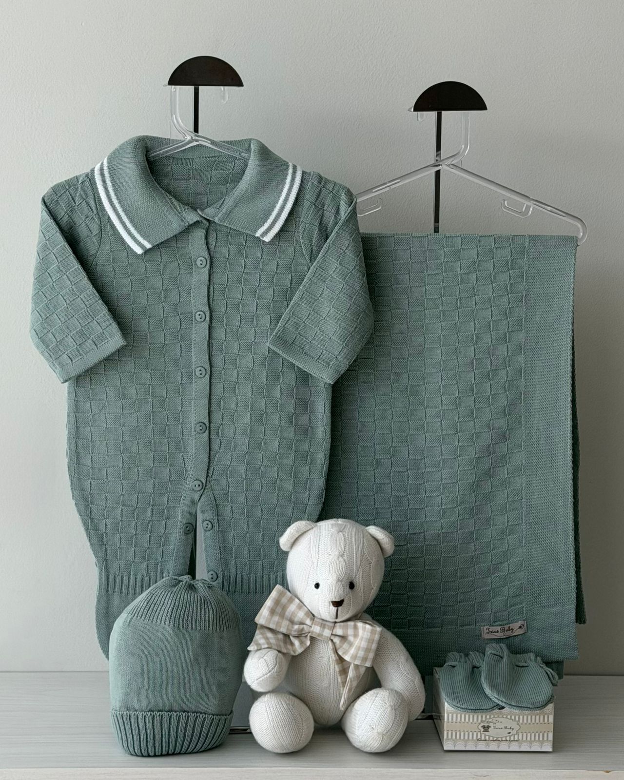 DESCRIÇÃO: A saída de maternidade Tricô Baby proporciona conforto e elegância ao seu bebê.