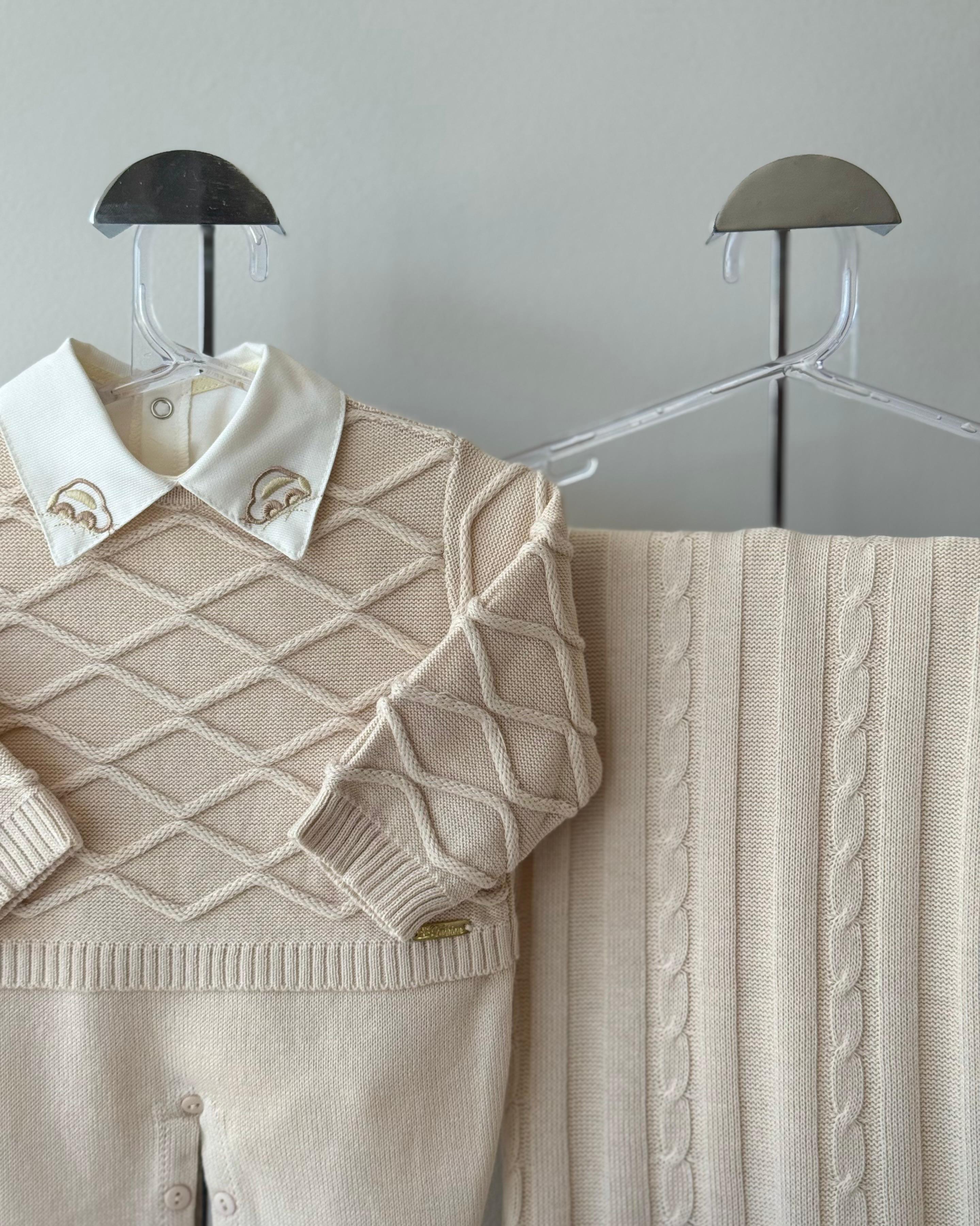 DESCRIÇÃO: A saída de maternidade Tricô Baby proporciona conforto e elegância ao seu bebê.