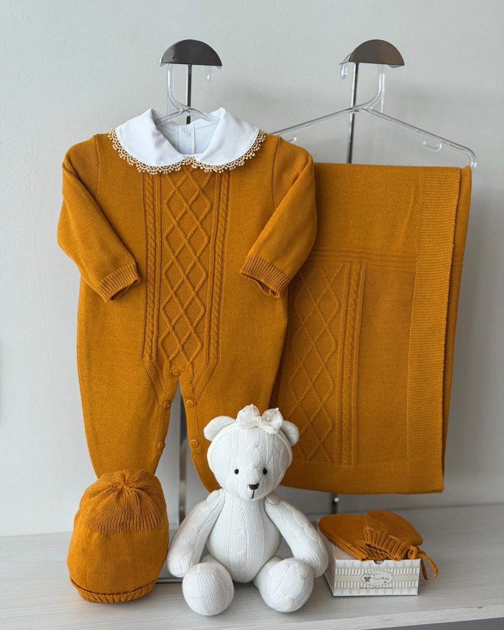 DESCRIÇÃO: A saída de maternidade Tricô Baby proporciona conforto e elegância ao seu bebê.
