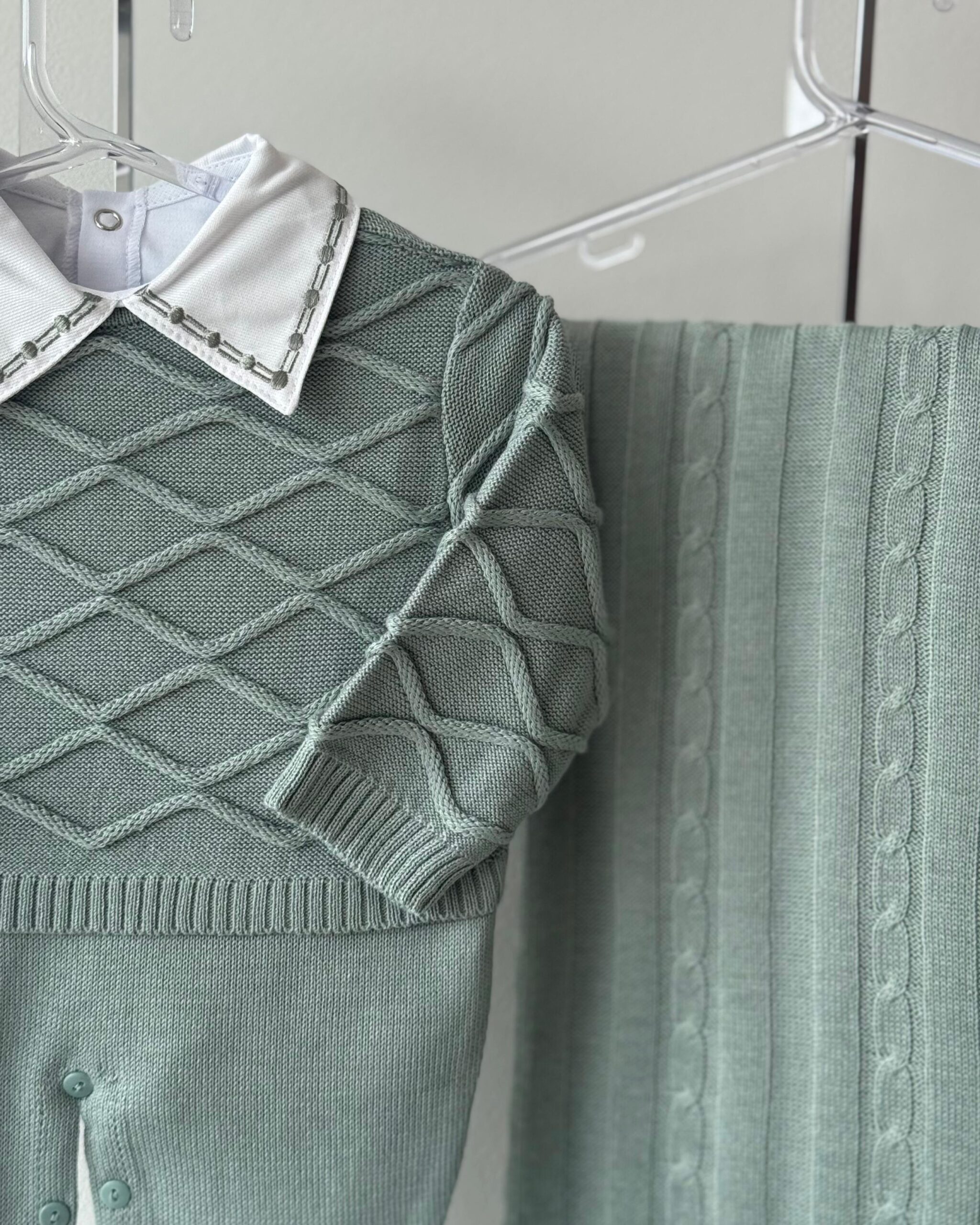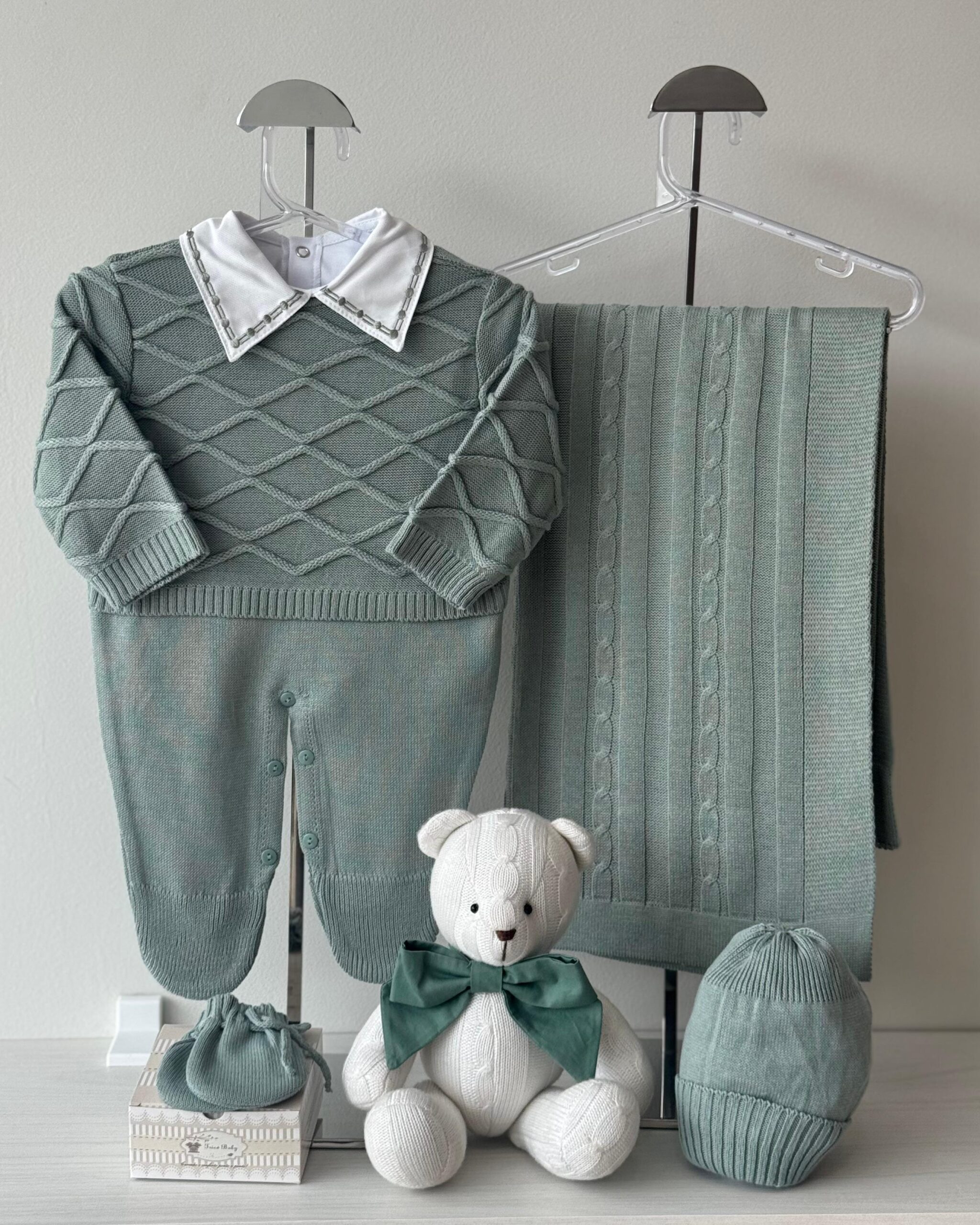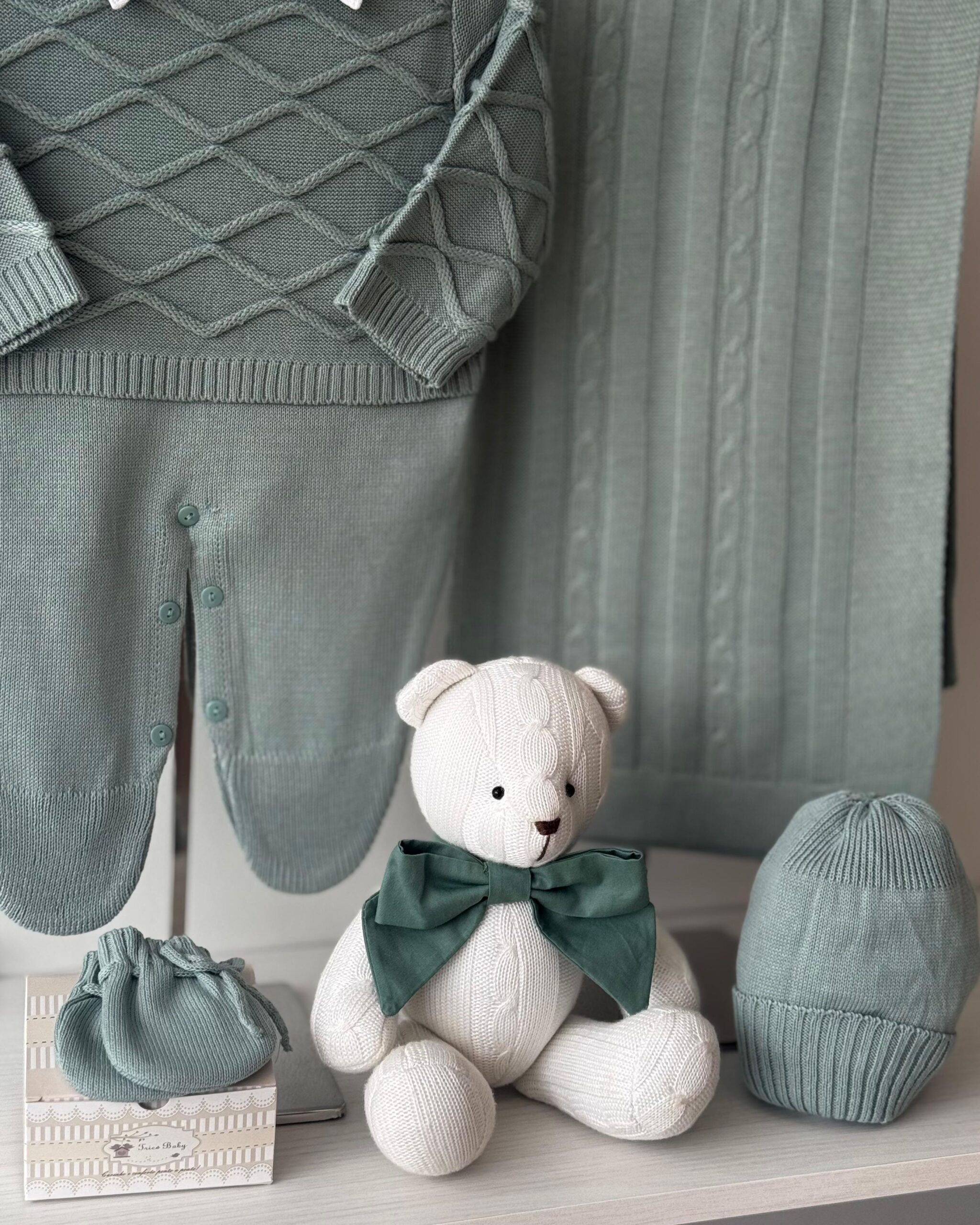 DESCRIÇÃO: A saída de maternidade Tricô Baby proporciona conforto e elegância ao seu bebê.