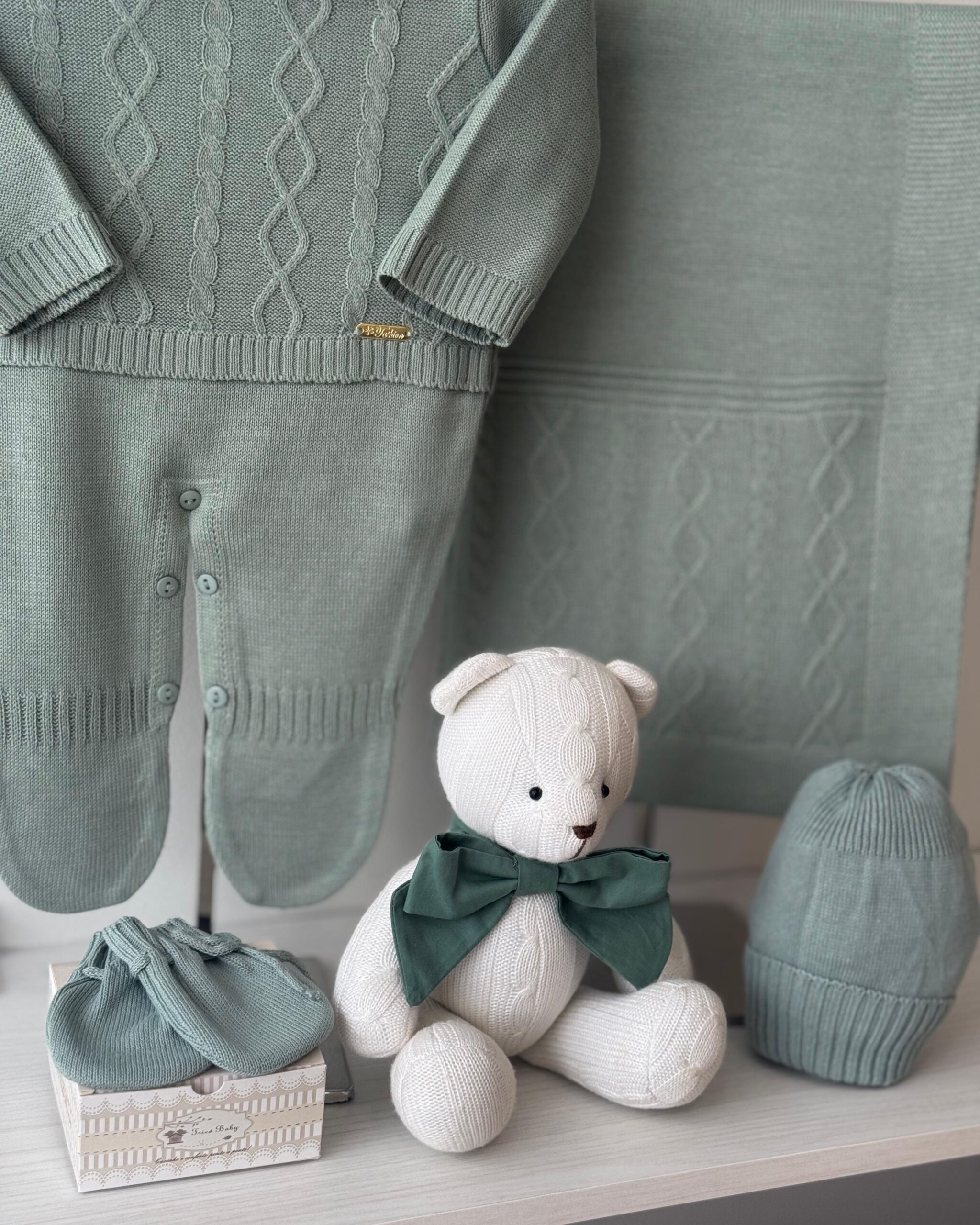 DESCRIÇÃO: A saída de maternidade Tricô Baby proporciona conforto e elegância ao seu bebê.