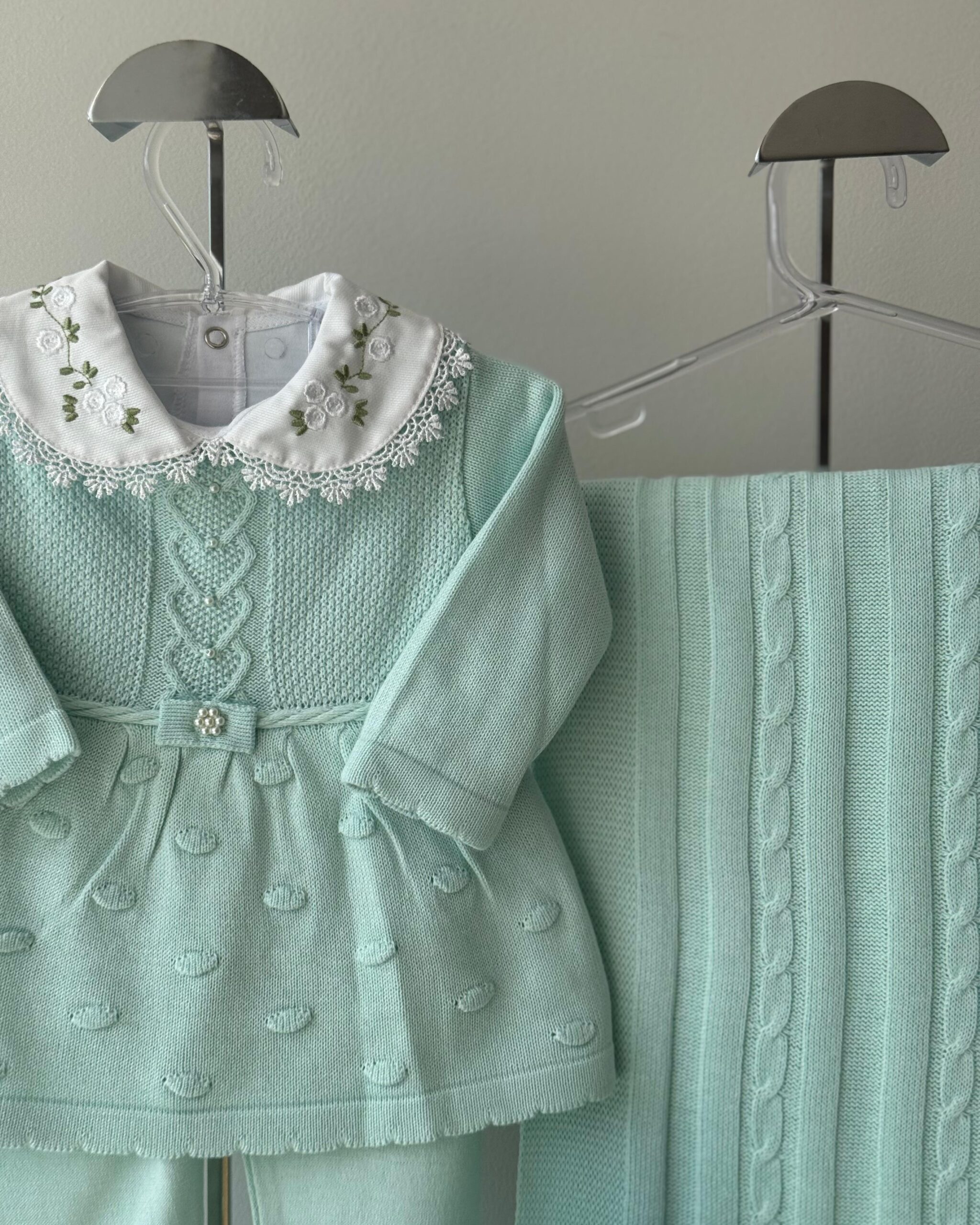 DESCRIÇÃO: A saída de maternidade Tricô Baby proporciona conforto e elegância ao seu bebê.